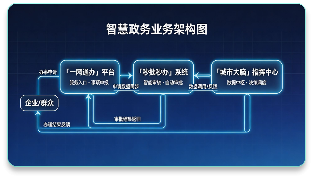 “秒批秒办”系统:基于AI与大数据自动审批标准化业务,大幅缩短办理时限。