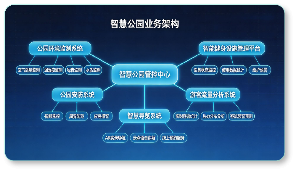 智慧公园利用物联网、大数据等信息技术,构建全方位感知体系,提升公园管理效能与服务质量,为市民打造绿色、便捷、安全的智慧休闲空间。